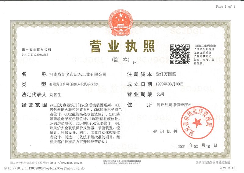 河南省新鄉市啟東工業有限公司始建于1987年,是專注研發、生產自動化儀器儀表(主要與壓力容器、鍋爐等容器配套使用)的廠家。主要產品有液位計(磁敏雙色型、磁翻柱型等)系列、烤包器熄火聯控裝置系列、壓力容器快開門安全聯鎖保護裝置系列、鍋爐報警器系列。二十多年來,公司產品暢銷國內并遠銷俄羅斯、蒙古與東南亞,深得廣大用戶的信賴和好評。我們多年來致力于自動化儀器儀表的研制生產,公司現具有完善的生產、試驗、檢測手段和設備??萍紕撔隆⒄\信服務,是我們不變的經營理念,我們將以強有力的技術支持及售后竭誠為客戶提供良好的服務?! ?012年我公司成功研發了KCL系列烤包器熄火聯控裝置,并于2013年2月2日榮獲中華人民共和國國家知識產權局辦法的《實用新型**證書》<**號:2021202257735>該產品廣泛應用于唐鋼等大型鋼鐵企業,為烤包器安全作業提供了有力的保障。  2002年我公司成功研發磁敏電子雙色液位計獨特的高亮度LED紅綠雙色顯示,獲得了專家的首肯和用戶的一致好評。在此基礎上我公司研發人員十年磨一劍,致力于XQFB-1防爆型磁敏雙色液位計的研發,于2013年12月27日由國家防爆電器產品質量監督檢驗中心檢驗合格并頒發防爆合格證書<編號:cnex19.0883>。該產品性能得到了充分的發揮,廣泛應用于含有Ⅱ類A·B級T1-T4組可燃氣體或蒸汽與空氣混合形成的爆炸性混合物的0區、1區危險場所。連接用戶DCS或PLC系統實現遠距離集中顯示和控制,從而實現節能、數字化管理。為用戶增加了一定的經濟效益和社會效益,。2014年公司成功申請了夢潤儀表的logo,新的品牌新的形象,夢潤儀表是啟東的LOGO, 歡迎新老用戶前來洽談合作?! ∥覀円蝗缂韧刈⒅乜蒲械耐度?,憑借產品的不斷更新、加大科技含量,進一步拓展市場。我們相信品質成就未來,以過硬質量、優惠價格、完善的售后服務熱忱歡迎廣大客戶來我司視察指導、洽談業務;精誠合作,共創輝煌!